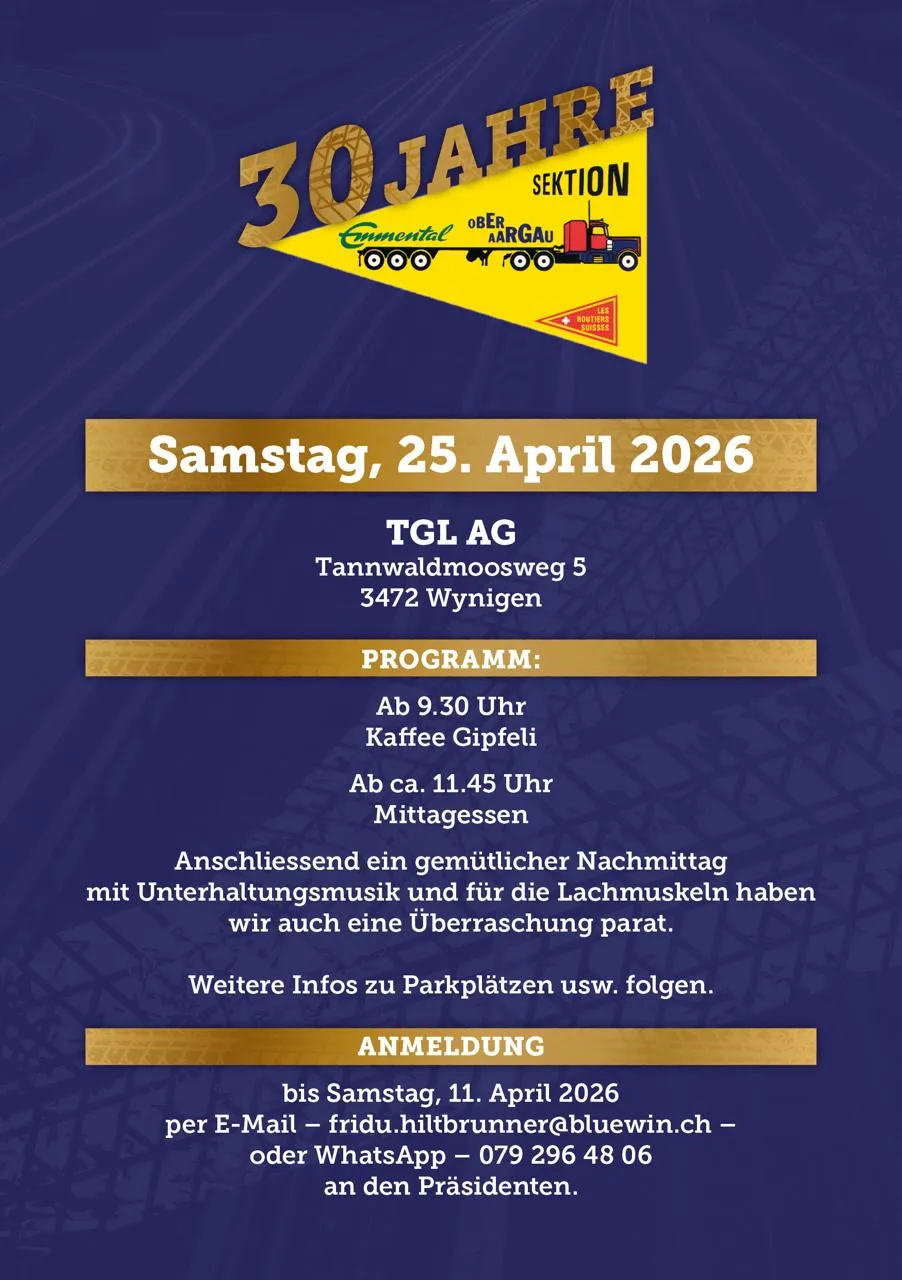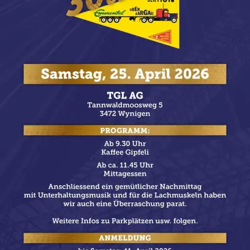 Samstag, 25. April 2026, 09:30 Uhr Feiern Sie mit uns 30 Jahre Sektion Emmental - Oberaargau Ort Wynigen Typ Events zur Agenda