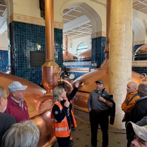 Höhepunkt des Vormittags war der Rundgang durch die traditionsreiche Brauerei Feldschlösschen. Die imposante Architektur des Brauereischlosses und die spannenden Einblicke in die Geschichte des Unternehmens begeisterten die Teilnehmenden. Besonders eindrücklich war die Erzählung über die Gründer: Der Brauer Theophil Roniger und der Bauernsohn Mathias Wüthrich verbanden Ende des 19. Jahrhunderts ihre Ideen und ihren Unternehmergeist. Während Roniger das Fachwissen als Braumeister einbrachte, stellte Wüthrich als Landwirt die Rohstoffe sicher. Gemeinsam legten sie den Grundstein für das Feldschlösschen, das heute zu den bekanntesten Brauereien der Schweiz gehört.